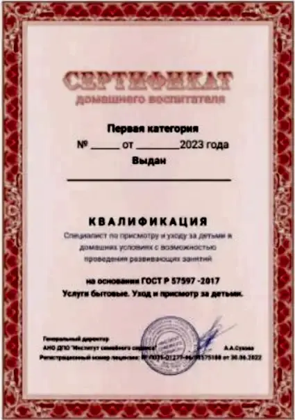 Сертификация нянь по ГОСТ ₸ 7597-2017